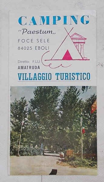 Pieghevole di 8 facciate di cm. 20 x 11; con 1 cartina e illustraz. fotograf. a colori; copertina fotografica e grafica a colori. VG. ** "Villaggio turistico diretto dai F.lli Amatruda." Testi in italiano, francese, inglese e tedesco.