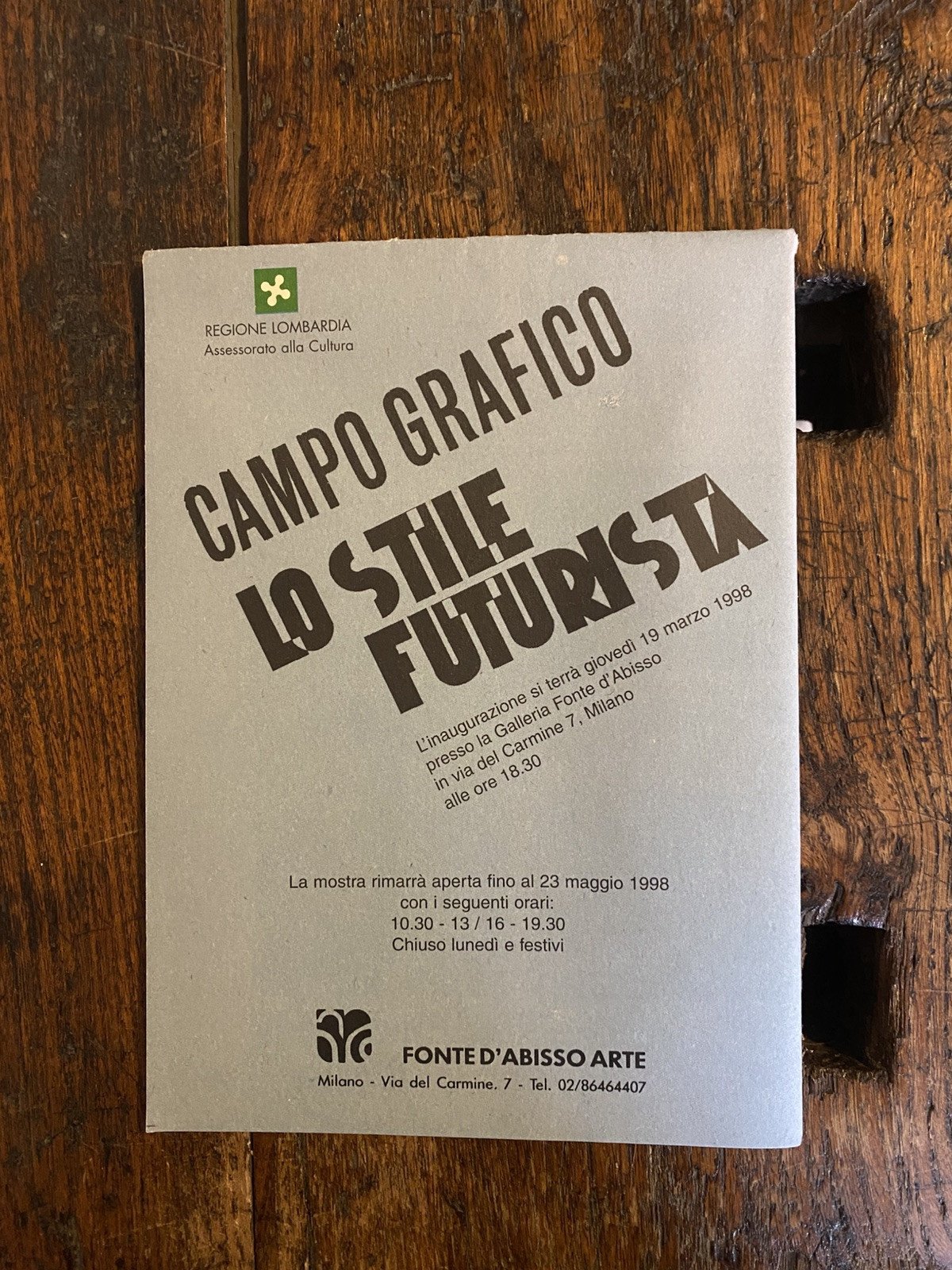 Invito / catalogo ripiegato 43 x 31 cm. per l'Esposizione alla Galleria Fonte d'Abisso Milano 1998 Illustrazioni bianco nero e colori Ottimo stato