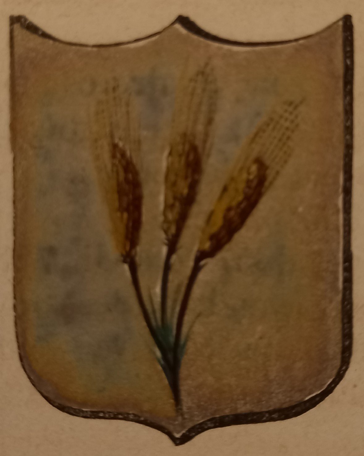 Piccolo stemma comunale colorato a mano d’epoca (cm. 3,8 x 3,2 ca.). Stralcio dal Dizionario Corografico illustrato dell’Italia, edito a Milano nel 1868. Ogni stemma di questa raccolta è inserito in una o più pagine di testo con la descrizione della località, notizie storico - geografiche e statistiche (numero degli abitanti e degli elettori, guarnigioni della Guardia Nazionale, ecc.). Spesso il testo è redatto da studiosi locali o dai sindaci, con maggiori, interessanti notizie.