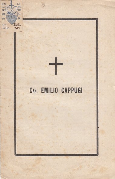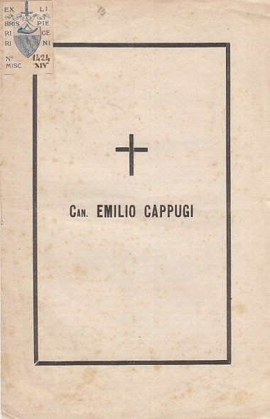 In-8 (Cm 23 x 15), pp. 6, brossura editoriale. Ex libris Pieri Gerini. Brossura un po' ingiallita con pieghetta verticale. Ordinari segni del tempo. BUONO - Emilio Cappugi nacque a Firenze il 15 Febbraio 1848. Il 6 Marzo 1863 fu ammesso al convitto clericale della Calza. Fu, nel medesimo convitto, maestro di Umanita' e di Retorica, successivamente fu nominato dall'arcivescovo Mons. Cecconi professore di matematica presso il seminario.