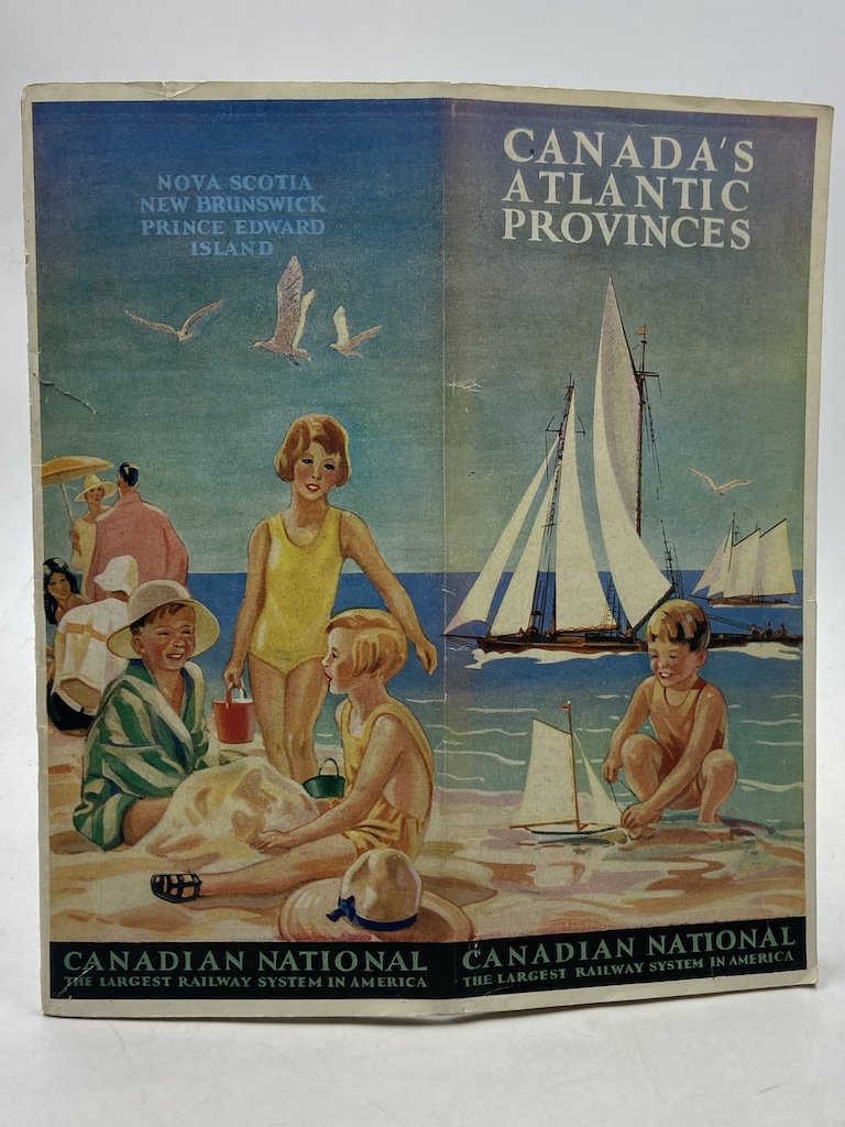 Opuscolo turistico della compagnia ferroviaria canadese, spillato cm21x23.5, pp 36 incluse copertine. Copertine a colori, numerose fotografie in nero, carta geografica ripiegata a colori. In inglese. Introduction by Frederick William Wallace, A Glorious Summer Playground, Gaspe, Northern New Brunswick, Delightful Beaches, Fredericton and the Saint John River Valley, Halifax, Nova Scotia’s Southern Shore, Pictou Lodge, Cape Breton, Prince Edward Island, Boys’ and Girls’ Camps.