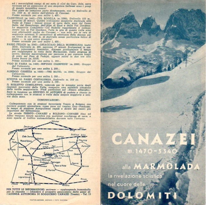 Canazei alla Marmolada: m. 1470 - 3340: la rivelazione sciistica nel cuore delle Dolomiti.