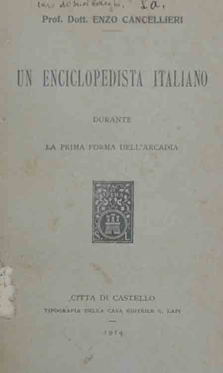 Cancellieri, Un enciclopedista italiano durante la prima fase dell’Arcadia