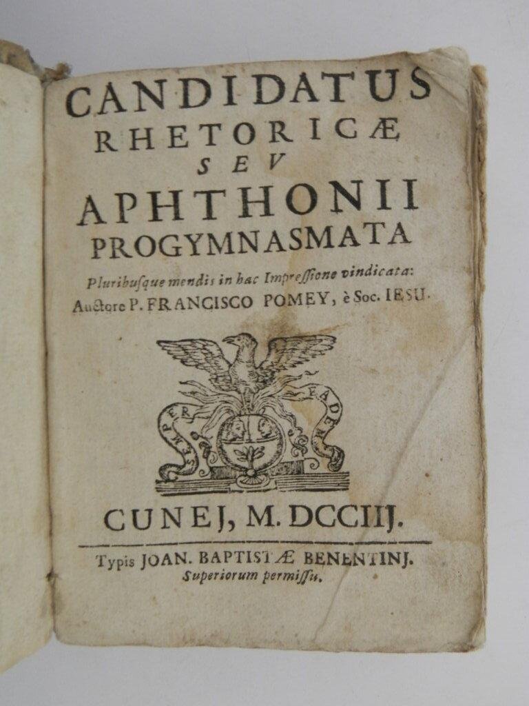 Candidatus rhetoricae seu aphthonii progymnasmata pluribusque mendis in hac impressione vindicata. Auctore P. Francisco Pomey