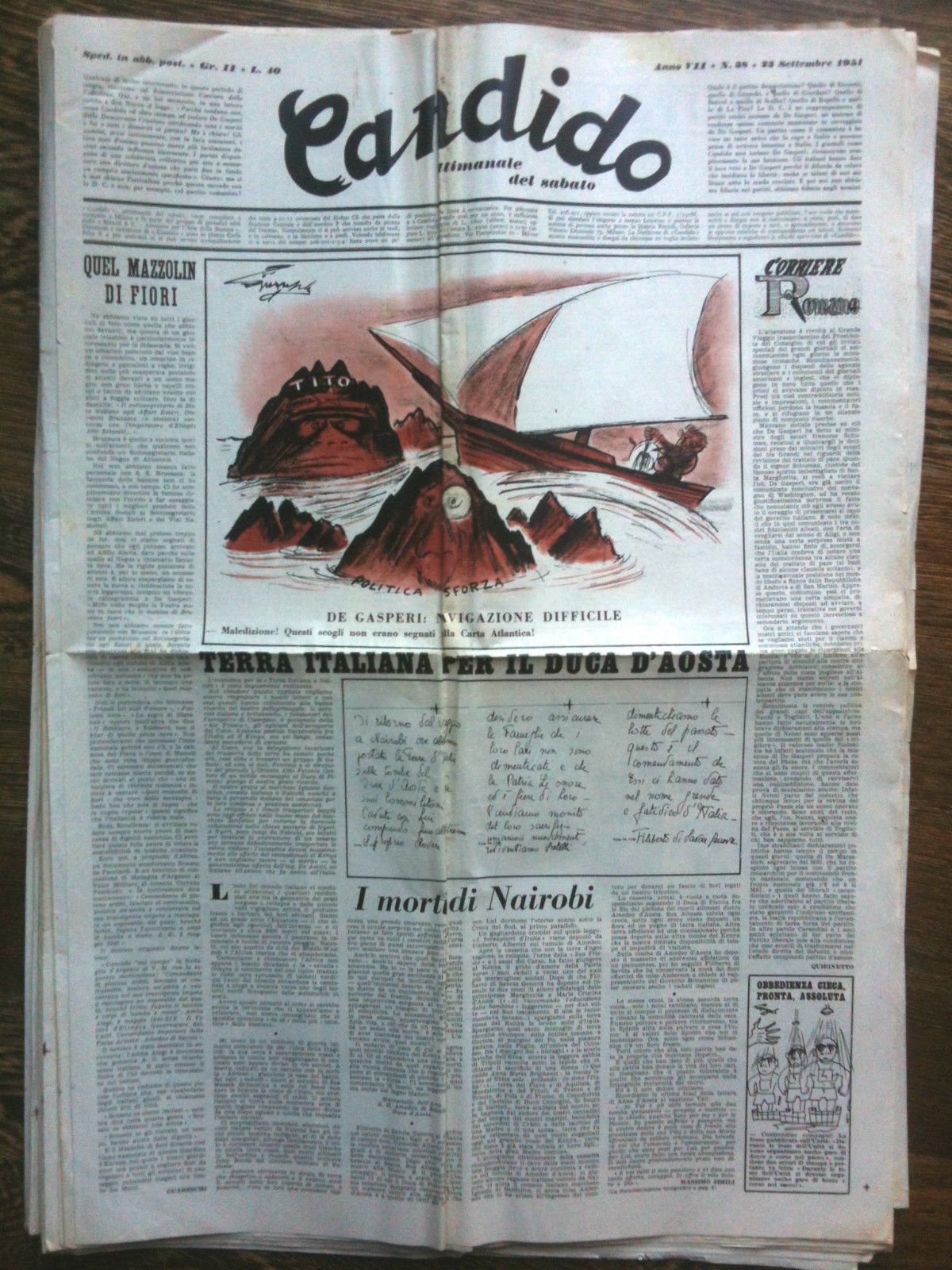 Candido Anno VII n^ 38 - 23 Settembre 1951 Direttore Giovannino GuareschiIn buono stato salvo piega e piccoli strappi bordi 27 gE8290