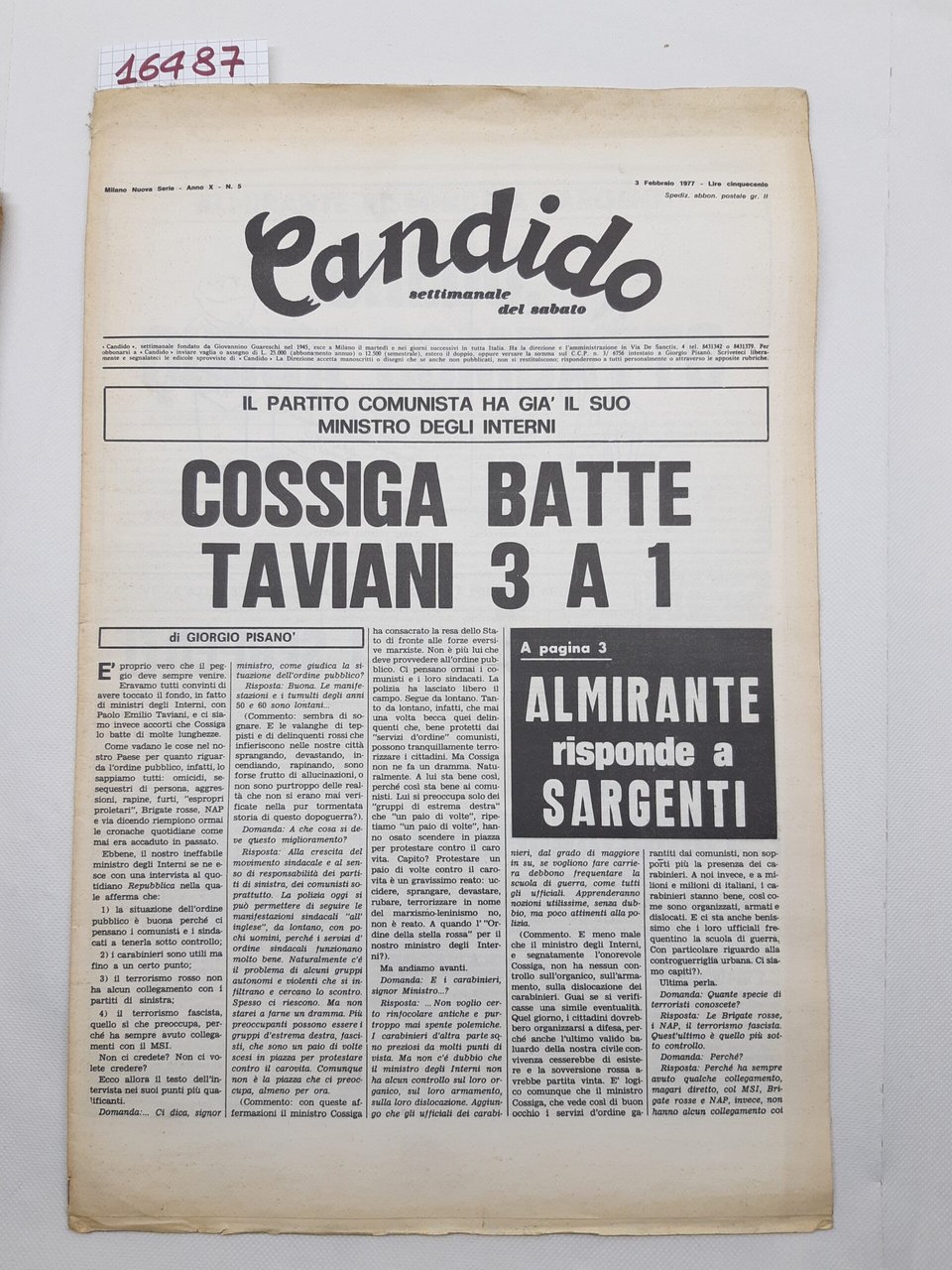 Candido settimanale del sabato numero 5 3 febbraio 1977