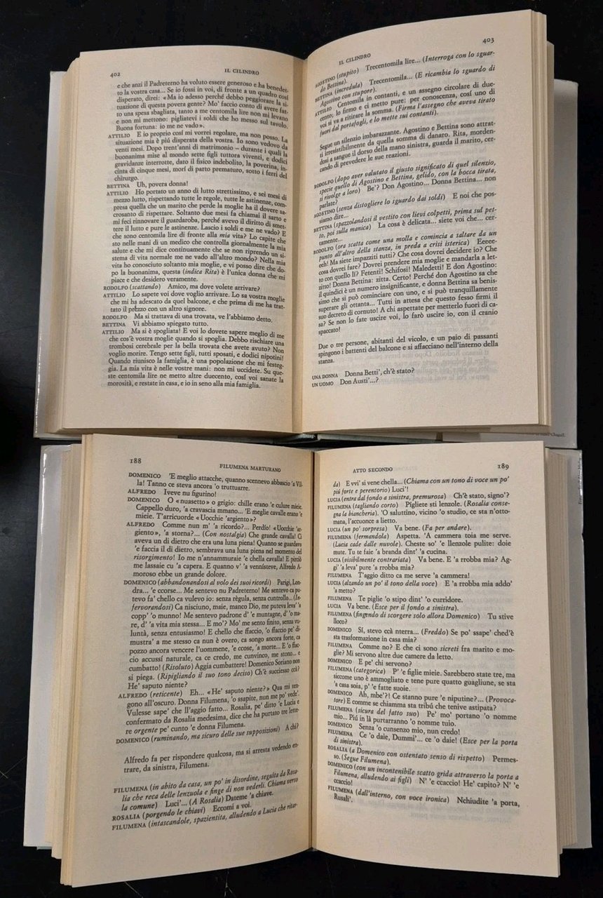 507 + 404 + 415 + 494 pagine. copertina editoriale in tutta tela con sovraccoperta e cofanetto in cartone rigido. stato di conservazione: OTTIMOLibro usato teatro letteratura italiana