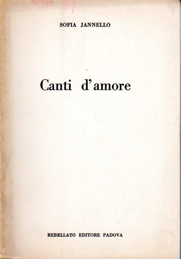 Canti d'amore, prima edizione 1961, pp. 66, formato 12 x 17.<BR>Copertina morbida di colore bianco con titoli in nero al piatto anteriore e sul dorso. Volume facente parte della collana "Zecchini d'Oro". All'interno presente dedica dell'autrice alla scrittrice Minnie Alzona, datato 8 ottobre 1961. <BR>Dorso leggermente brunito. Nel complesso ottime condizioni.