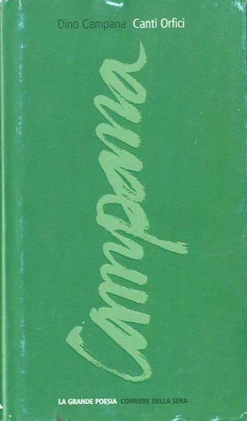 Ed. speciale. XIX, 148 p. ; 21 x 13 cm. La grande poesia, 26. Una vita errabonda, chiusa a trentatre anni con il ricovero in manicomio, ha sbrigativamente fatto di Dino Campana un maudit, il Rimbaud italiano, un caso clinico da affidare all'aneddotica. Autore di un solo straordinario libro, i «Canti Orfici», pur affondando le radici nella cultura europea, quella simbolista in particolare, il «poeta pazzo» ha in realtà caratteri propri che lo rendono difficilmente collocabile in una linea o in una tradizione. Quella del «visionario», forse la figura più inquietante del nostro Novecento letterario, è una scrittura orfica (cioè misteriosa, oscura, per iniziati), scaturita da una vena ben consapevole della «purità di accento» che la percorre. Legatura editoriale, coperta in cartone rigido di colore grigio, con impresso il titolo in nero al dorso, muto al piatto. Segnalibro originale. Sovraccoperta di colore verde. Codice libreria 5174.