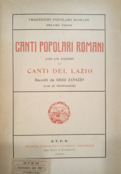 Volume Terzo di Tradizioni Popolari Romane, in-16, cart.m.t. con nerv. e fregi dorati alla costa., pp.399, ex libris retro cop e firma prop. al front., molto buono