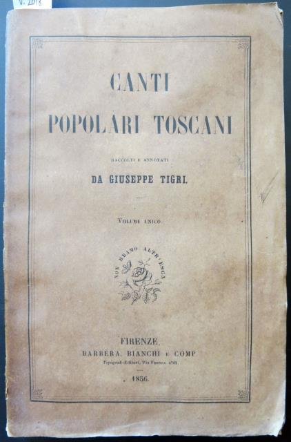 Canti popolari Toscani raccolti e annotati da Giuseppe Tigri.