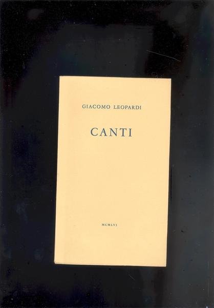 IN 16° (cm.19 X 11,5 ), pp.205, INDICE. COPERTINA EDITORIALE CON TITOLO. LA LEZIONE DEI CANTI LEOPARDIANI ADOTTATA NELLA PRESENTE EDIZIONE E' STATA ESEMPLATA SUL TESTO CRITICO DI FRANCESCO MORONCINI. IL NOSTRO ESEMPLARE, E' UNO DEI 400 TIRATI<BR>SU CARTA LANA. RARA EDIZIONE CON BARBE, CARATTERI GARAMOND, MANTENUTO IL COFANETTO RIGIDO MUTO. OTTIMA CONSERVAZIONE . ID, 6318