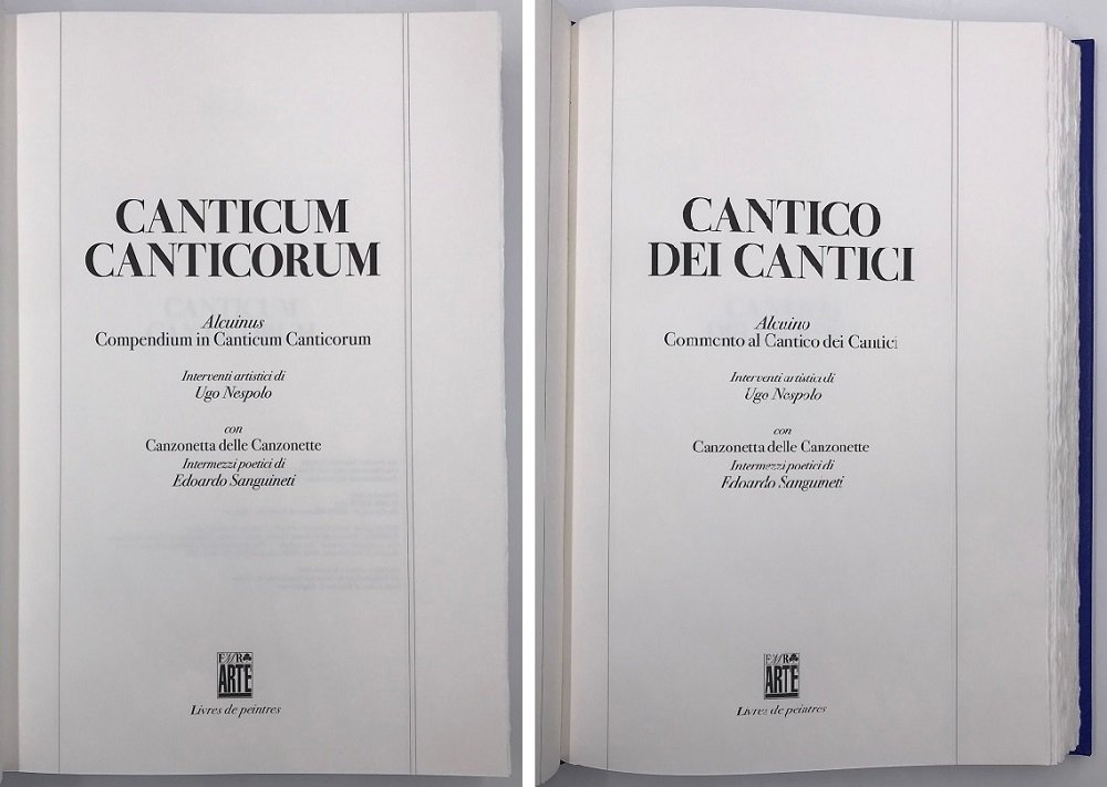 Introduzione di Rossana Eugenia Guglielmetti, lettera al lettore di Flaminio Gualdoni, otto interludi poetici di Edoardo Sanguineti; otto tavole a colori di Ugo Nespolo. Formato 42,5x28 cm. Ogni copia è numerata e firmata da Ugo Nespolo. Custodia in plexiglass. Tiratura limitata a 975 esemplari numerati.