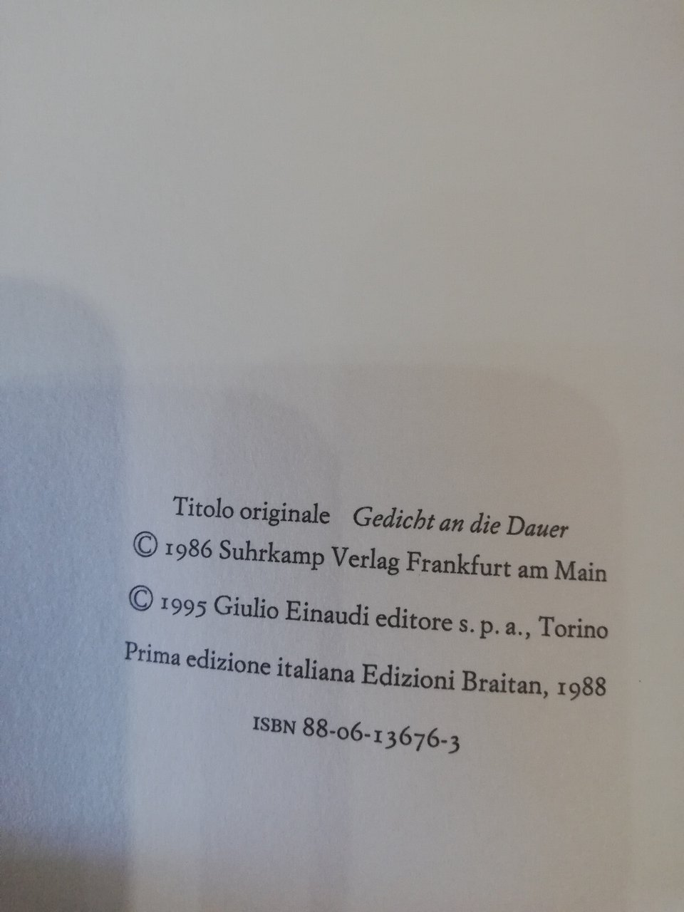 Canto alla durata, Peter Handke, Einaudi, 1995