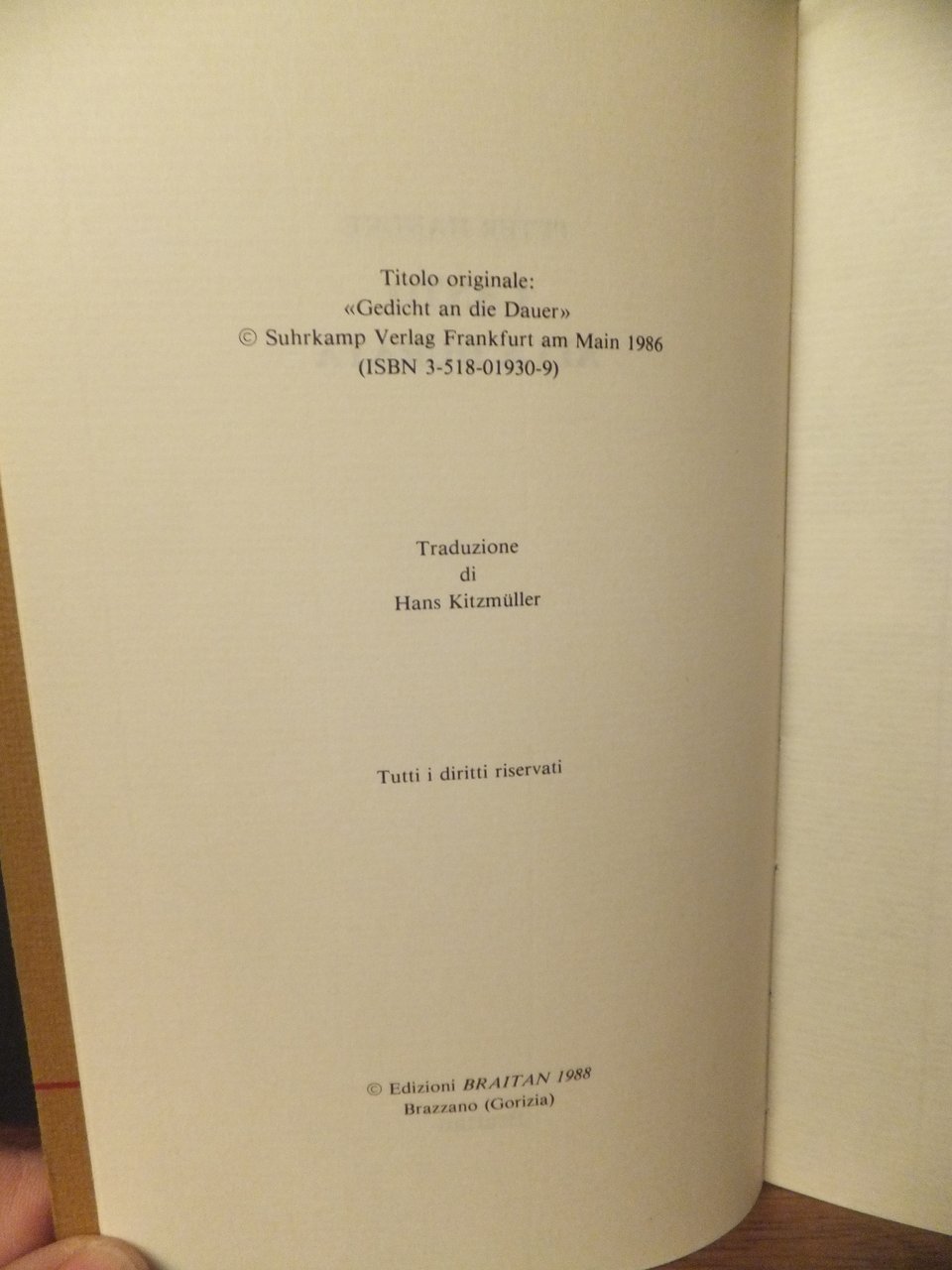 EDIZIONI BRAITAN 1988 BROSSURA SOVRACOPERTA 21 X 12 PP. 53 OTTIME CONDIZIONI. SOLO DEDICA PRIVATA - VEDI FOTO -