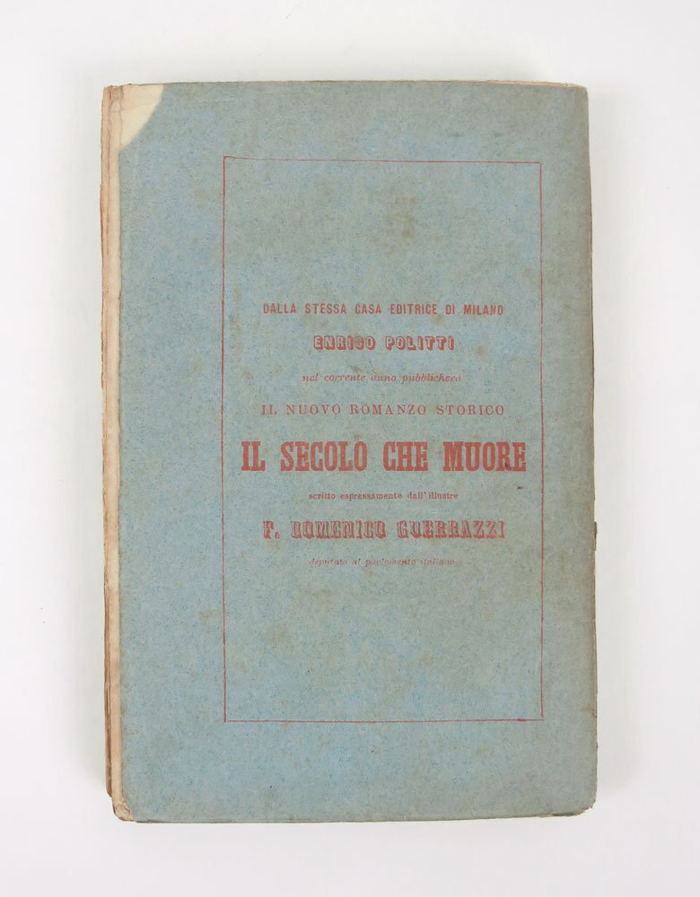 LIBROEdizione originale. Buon esemplare (perimetrali mancanze alla brossura, gora perimetrale alle prime carte, mancanza marginale all’occhietto).Romanzo storico su Achille Cantoni, patriota morto nel 1867 che, secondo l’autore, gli aveva salvato la vita in gioventù e si era distinto per valore militare in molte occasioni.Campanella, 11920