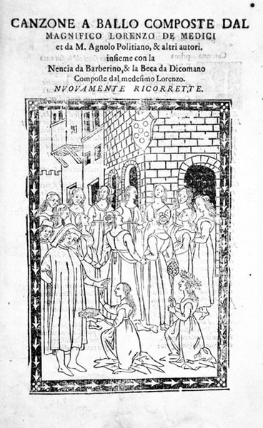 CANZONE A BALLO. - Composte dal Magnifico Lorenzo de Medici et da M. Agnolo Politiano, & altri autori, insieme con la Nencia da Barberino, & la Beca da Dicomano composte dal medesimo Lorenzo. Nuovamente ricorrette.