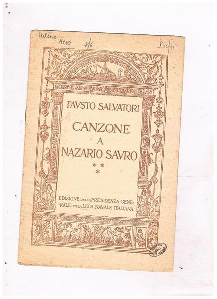 Canzone a Nazario Sauro. Edizione della presidenza generale della lega navale italiana.