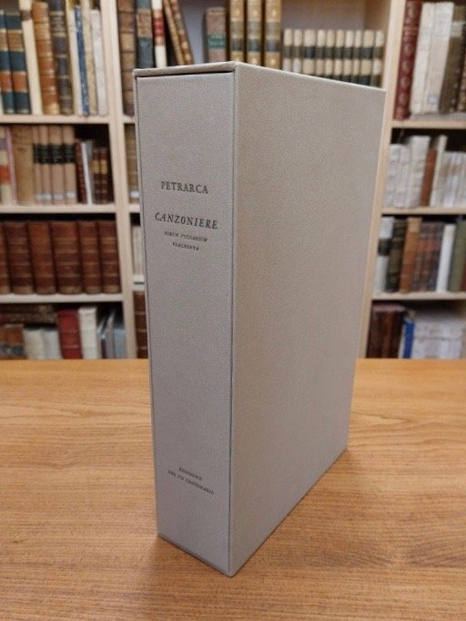 <span style="font-style: normal;">In-4° (cm. 29), pagine 296 LII [24] composte caratteri corsivi corpo dodici disegnati da Alberto Tallone ed incisi a Parigi da Ch. Malin. Edizione di 460 esemplari per il settecentenario della nascita del poeta, il ns. numero 32 della tiratura in carta Magnani avorio. Ultime pagine con apparati critici di Contini. Brossura editoriale a risvolti, titolo in inchiostro </span><i>bleu foncé</i> al piatto anteriore e al dorso, camicia e cofanetto in cartonato grigio perla. Ottimo esemplare allo stato di nuovo.