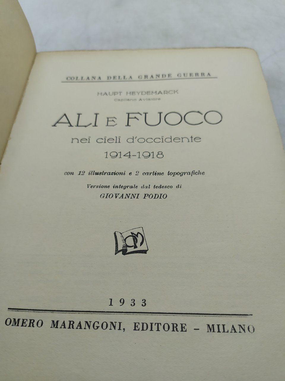 cap.hey demarck ali e fuoco nel cielo di verdun . , 1933 italiano, pp.253 ^^brossura