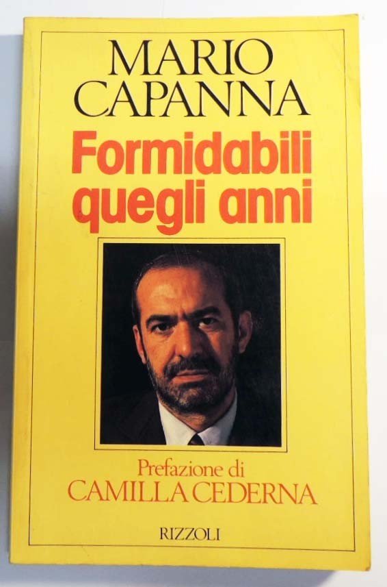 Mario Capanna, Formidabili quegli anni, prefazione di Camilla Cederna, Rizzoli, Milano 1988, quinta ed., pp. 234, cm 22, br. ed. Mario Capanna, leader del Movimento Studentesco milanese, racconta il suo Sessantotto. Dedica a penna all’occhiello. Lievissime tracce d’uso alla brossura, per il resto buon esemplare.