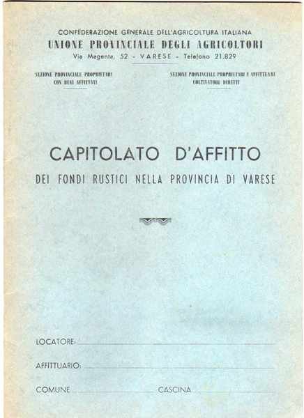 Capitolato d'affitto dei fondi rustici nella provincia di Varese
