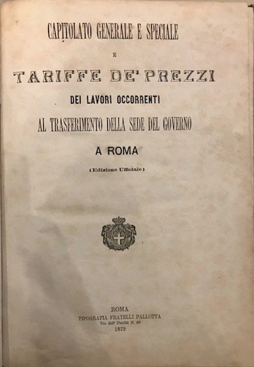 Capitolato generale e speciale e tariffe de’ prezzi dei lavori occorrenti al trasferimento della sede del Governo a Roma (edizione ufficiale)