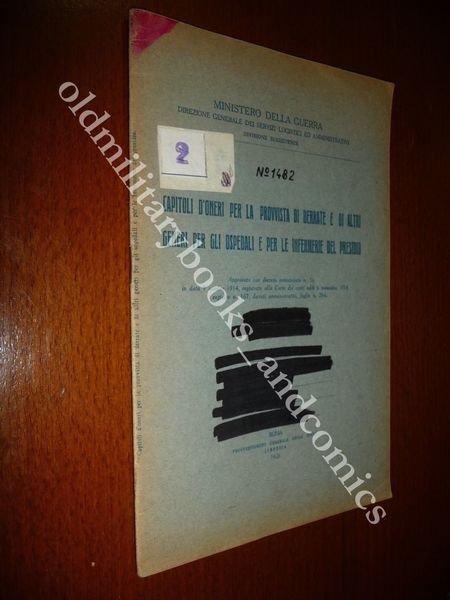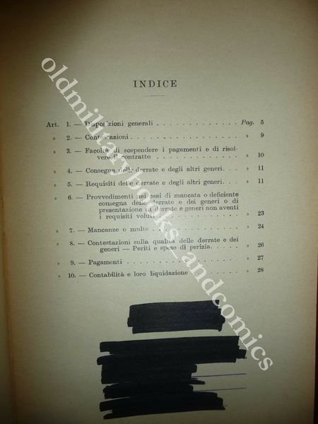 DESCRIZIONE: Ministero della Guerra Provveditorato Generale dello Stato Roma 1926, br. ed. pp. 29, in 8°. Interessante pubblicazione del R.E. che tratta in maniera dettagliata del capitolato tecnico che prevede: contestazioni, sospensione dei pagamenti, requisiti delle derrate, mancanze o multe etc. Indice completo in foto. CONDIZIONI: Discrete/Buone, vol. che presenta dei segni di pennarello in cop. ed all'antiporta, ed un timbro in terza pagina. PESO / WEIGHT: 45 gr. without package