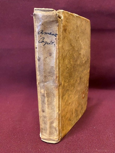 Edizione originale, rara. Raccolta di componimenti curiosi e pungenti su viaggi a Portici, Pannarano, Maiori, Sorrento, Montecassino, Avella, Serino, etc. Niccolò Amenta (Napoli, 1659-1719) letterato e poeta drammatico, abbandonata la carriera forense per quella letteraria, pubblico' diversi saggi su questioni linguistiche, poesie e commedie. Legatura coeva in tutta pergamena rigida, titolo manoscritto al dorso, tagli spruzzati, grande ex libris nobiliare (Giuseppe Maria Parascandolo) al contropiatto. Buonissime condizioni. Sc. D.
