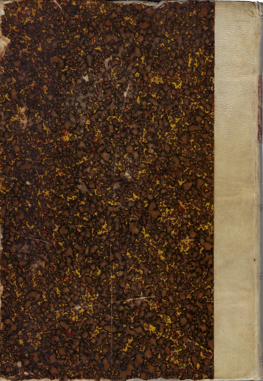 Rilegatura d'amatore in mezza pergamena, titoli in oro su tassello rosso e fregi in oro al dorso liscio, piatti rivestiti in carta marmorizzata.