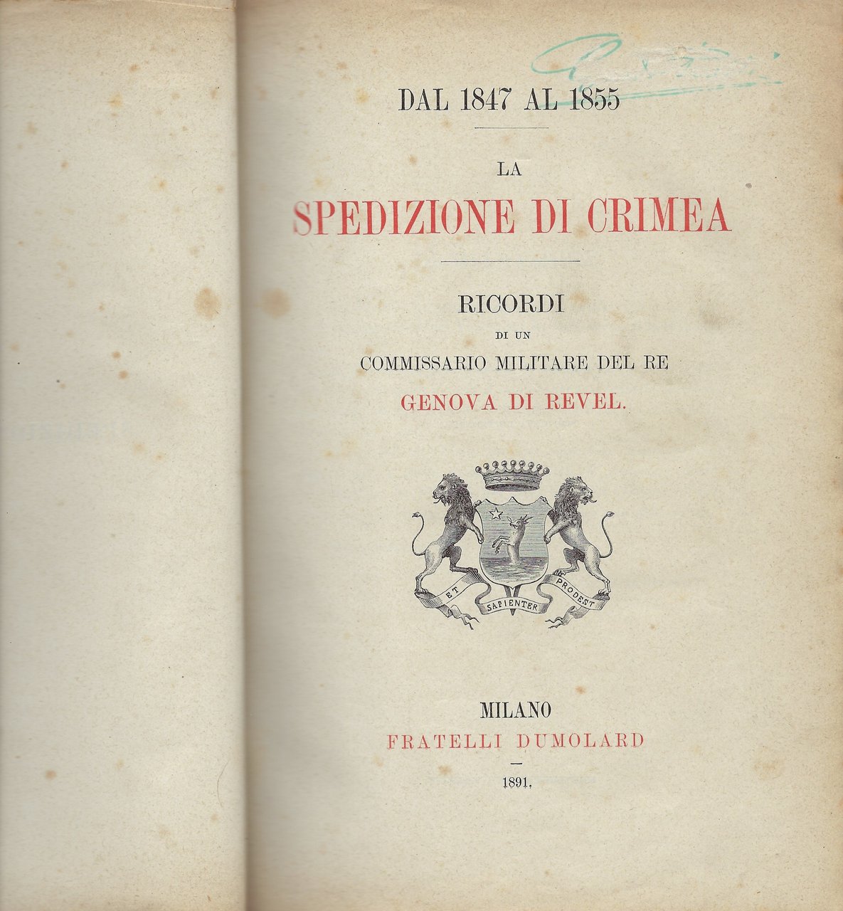 Parte I: "Dal 1847 al 1855: La spedizione di Crimea." Ricordi di un commissario militare del re."