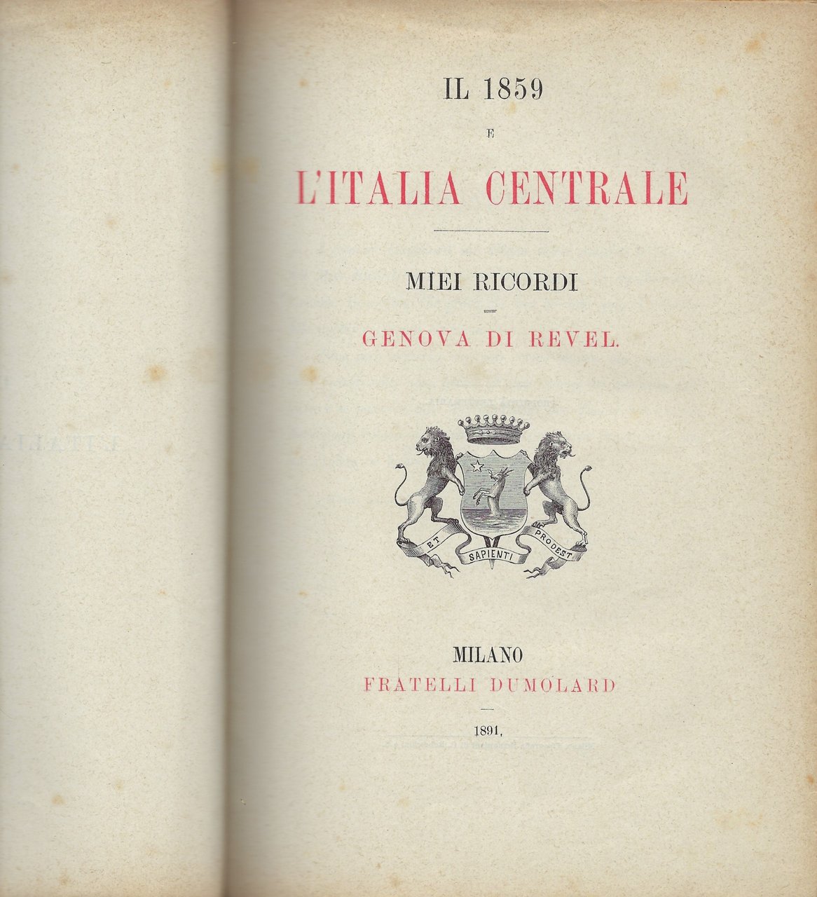 Parte II: "Il 1859 e l'Italia centrale. Miei ricordi."