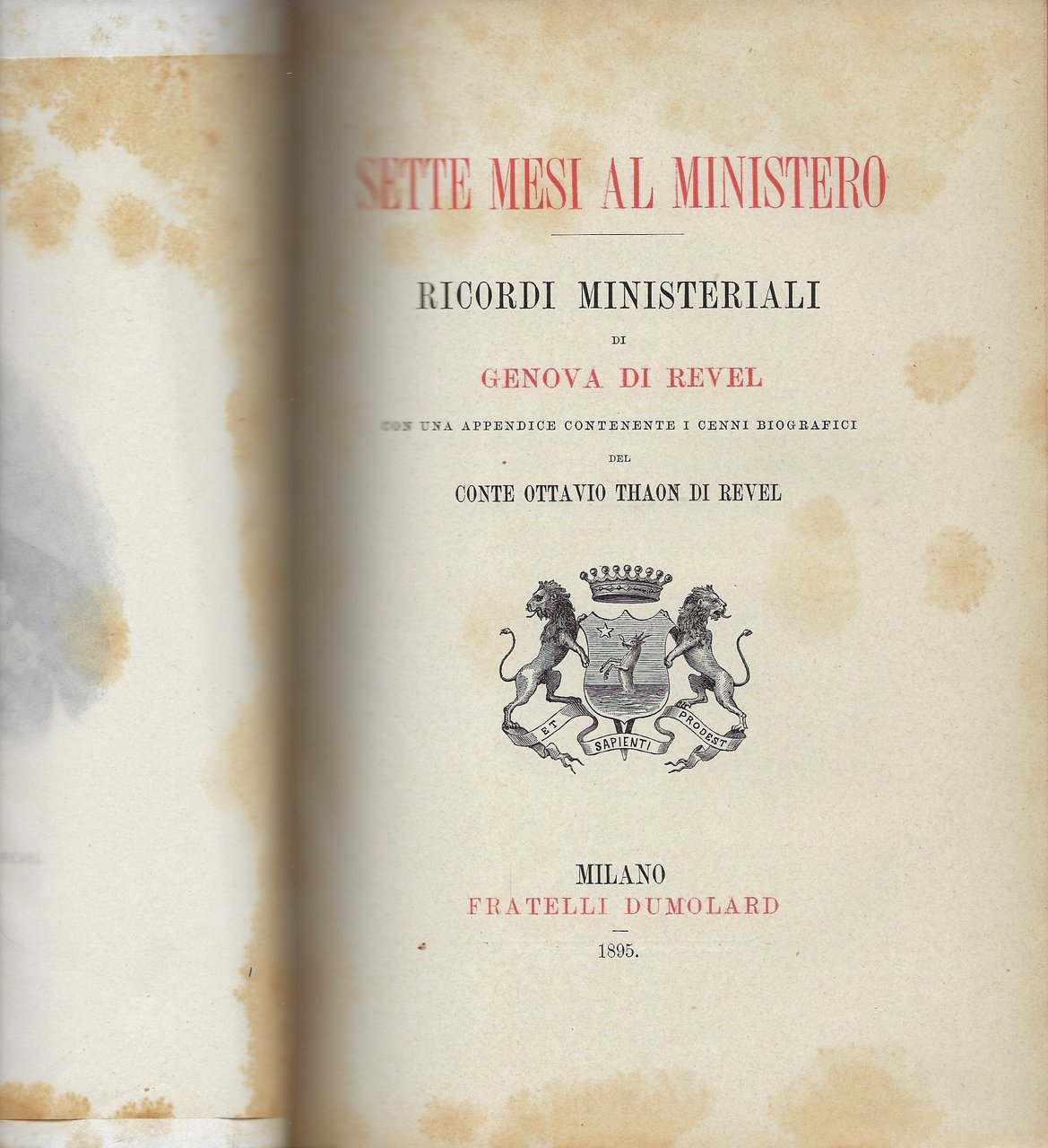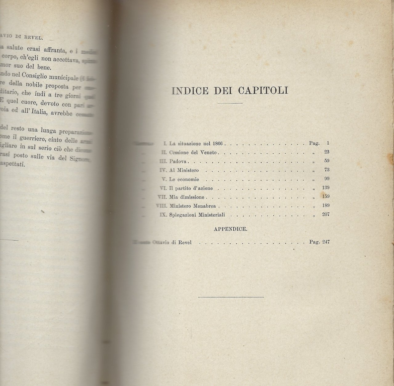 Parte III: "Sette mesi al Ministero. Ricordi Ministeriali, con una appendice contenente i cenni biografici del conte Ottavio Thaon di Revel."