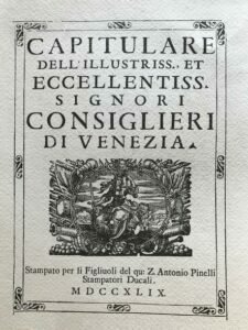 CAPITULARE DELL’ILLUSTRISS., ET ECCELLENTISS. SIGNORI CONSIGLIERI DI VENEZIA. ANASTATICA