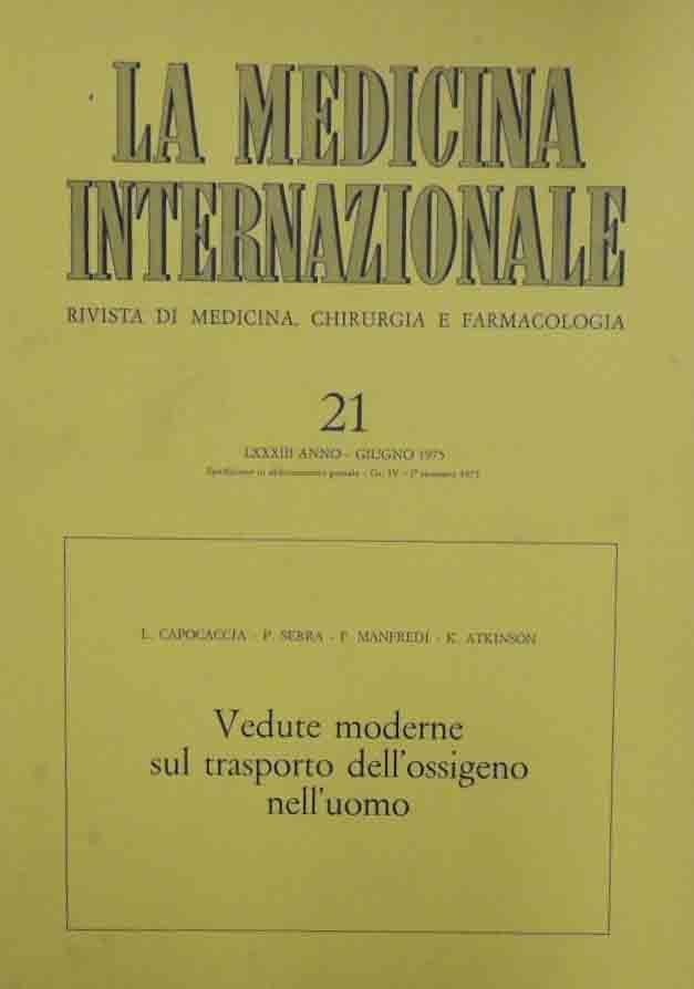 Capocaccia et al., Vedute moderne sul trasporto dell’ossigeno nell’uomo, La medicina internazionale, a. LXXXIII, n. 21, giu 1975