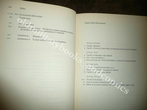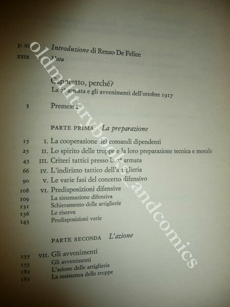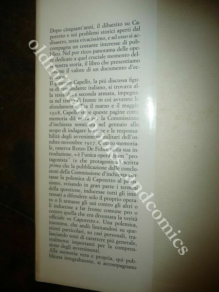 DESCRIZIONE: Einaudi Ed. Torino 1967 I^ Ed., br. ed. ca. con sovracc. ill. col. con alette, pp. XXXI+362 13 ill. b/n f.t. in 8°. La difesa di uno dei responsabili della sconfitta di Caporetto, solo lui? Un libro indispensabile per capire gli avvenimenti del 1917 - 13 foto e due grandi carte piu' volte ripiegate e diagrammi. CONDIZIONI: Buone, dorso leggermente scolorito. PESO / WEIGHT: 700 gr. without package