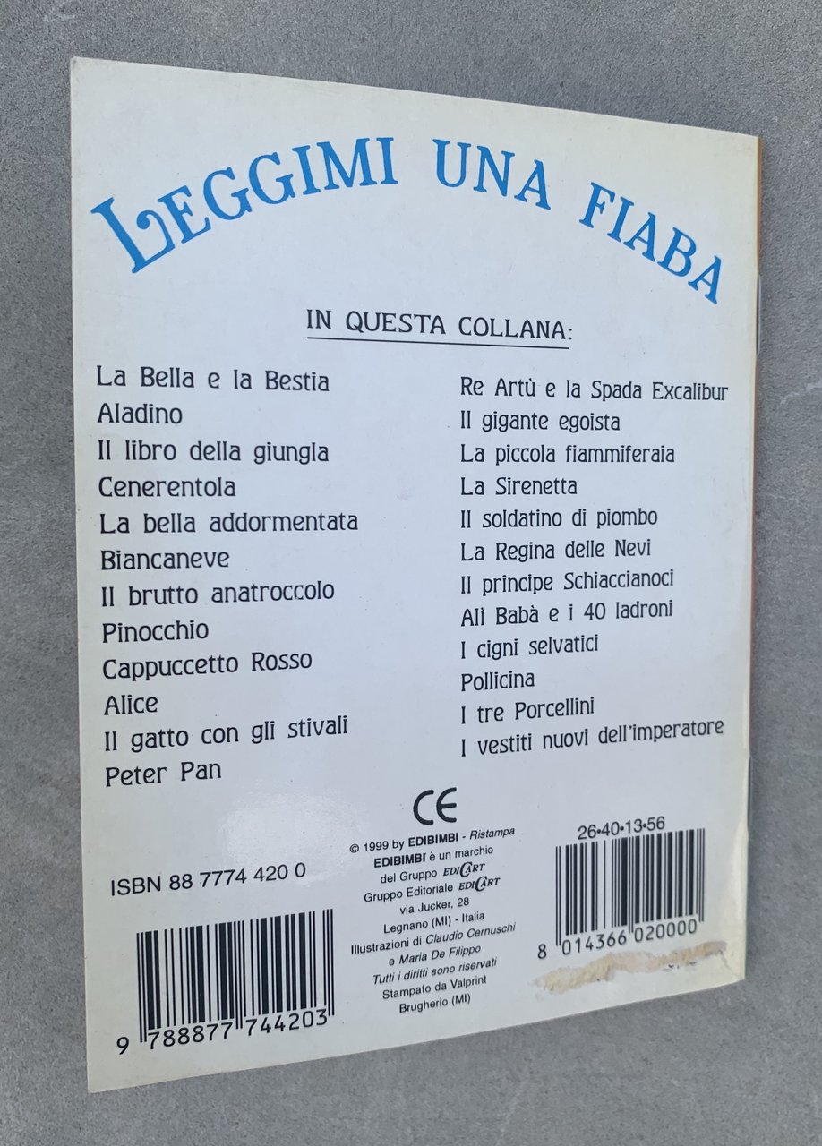 I ed. Edibimbi: ristampa ediCart 1999 (I ed.: ediCart 1993). Collana Leggimi una fiaba 9. XXIV/(16)/brossura patinata. Copertina e pagine illustrate a colori. Illustrazioni di Claudio Cernuschi e Maria De Filippo. Stato buono (volumetto nel complesso leggermente brunito - prezzo abraso in quarta di copertina).
