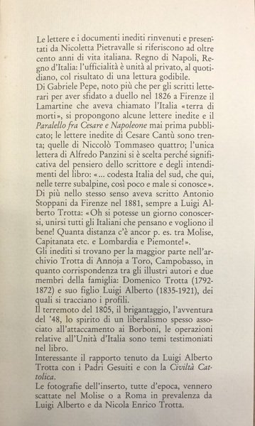 CARA ITALIA, TUO MOLISE. Lettere inedite di Pepe, Tommaseo. Cant�, Panzini