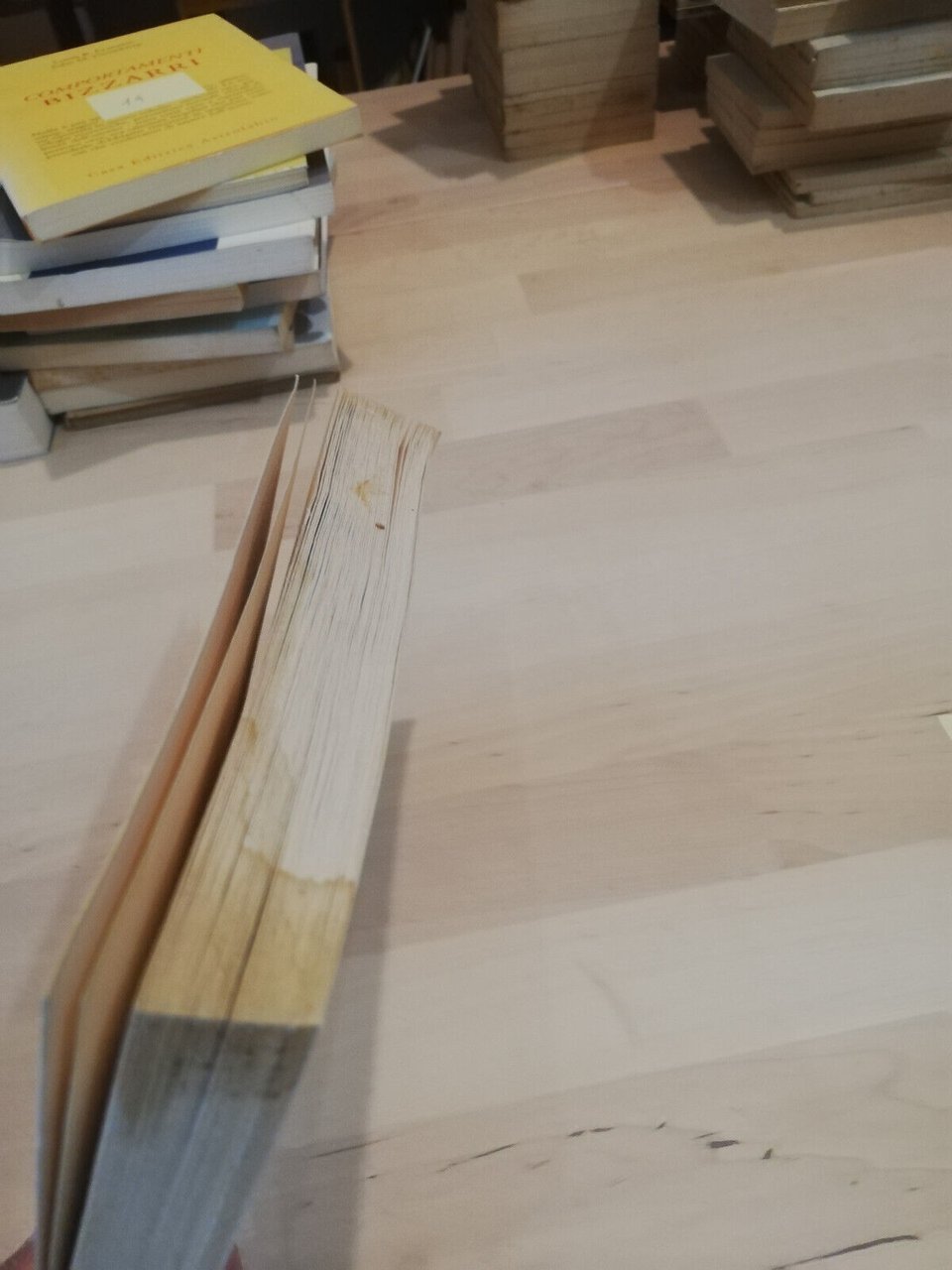 Copertina con segni di usura, come da foto. Macchia di umidità all'angolo e in tutte le pagine relative, come da foto