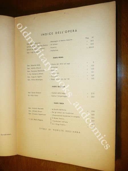 CARABINIERI ISTITUTO DEL NASTRO AZZURRO AA.VV. STORIA DELL'ARMA FINO AL 1956