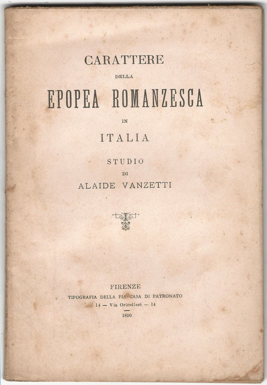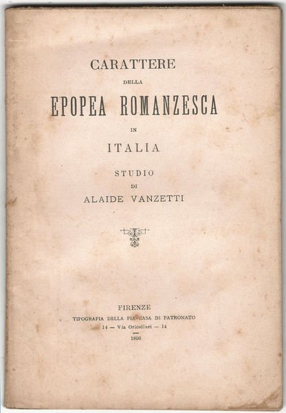 Carattere della epopea romanzesca in Italia. Studio.