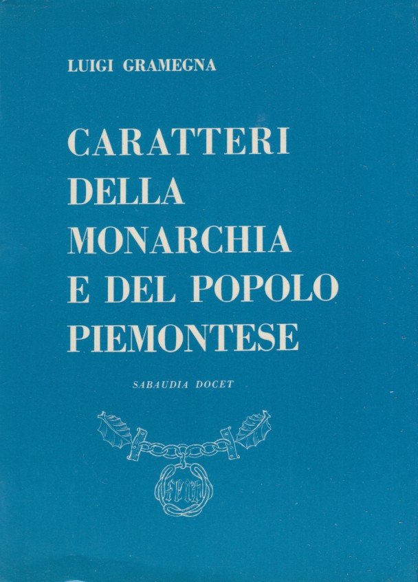 Gramegna Luigi: Caratteri della monarchia e del popolo piemontese. Andrea Viglongo & C. 1961In-8 (Cm 21,5 x 15,5), pp. 247, brossura editoriale con sovraccoperta. Minimi segni d'uso. MOLTO BUONO