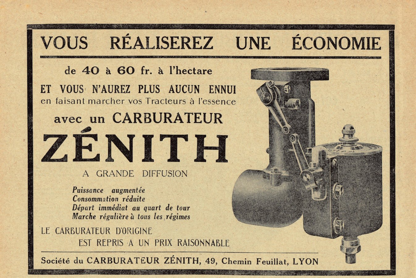 Carburateur Zenith. Advertising 1926