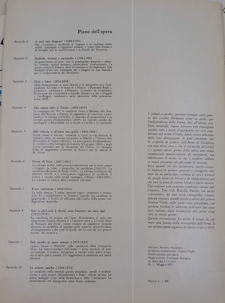 CARICAT!- TRE SECOLI DI STORIA DELL'ARMA DI CAVALLERIA-10 FASCICOLI-(1973)