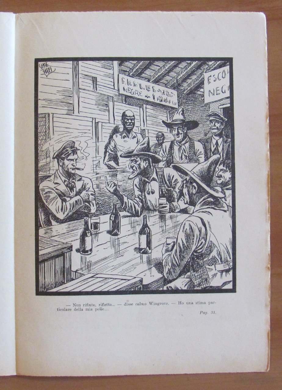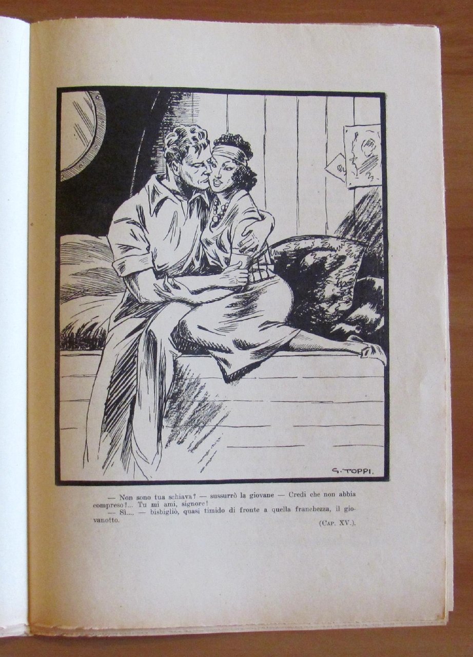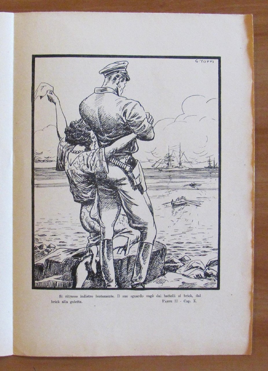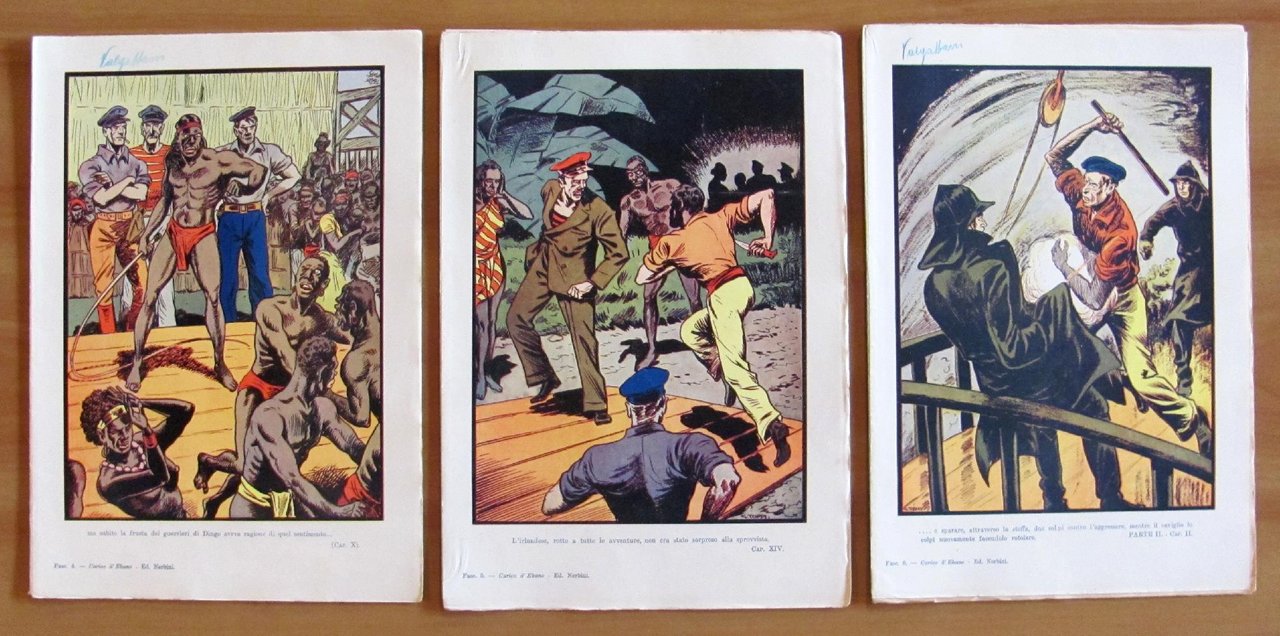 Opera Completa in 10 Fascicoli sciolti. Splendide illustrazioni a colori alle copertine, 1 tavola a colori f.t. al primo fascicolo e 1 illustrazioni in b/n n.t. in ciscun fascicolo di Giove Toppi. Casa Editrice Nerbini - Firenze, 1935/36. Brossura originale non rilegata con la copertina anteriore staccata dal dorso. Rara opera Completa in Fascicoli sciolti tutti con copertine originali, salvo il Fascicolo 10 che ne è privo. Alcuni fascicoli hanno la firma di vecchia appartenza a amatita colorata in copertina. Tutti integri, freschissimi e puliti. 20,5x29,5; pp.154. Raro e in Ottimo stato.
