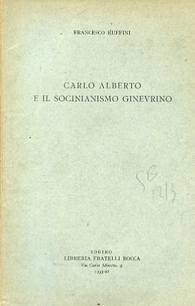 In-8°, pp. 62, brossura editoriale. Dedica autografa dell'autore a Umberto Soleri. Studio sui rapporti tra Carlo Alberto e i sociniani di Ginevra del celebre giurista, storico e antifascista Francesco Ruffini (Lessolo, 1863-Torino, 1934), uno dei pochissimi professori universitari italiani che rifiutarono il giuramento al regime fascista. 'La discordanza fra le opinioni e le pratiche religiose di Carlo Alberto, che si credette di potergli imputare al suo primo giungere in Piemonte, si spiega con l'educazione ricevuta a Ginevra presso il pastore Vaucher, ed al Socinianesimo ivi dominante, razionalista, ma non irreligioso'. Estratto dagli 'Atti della Reale Accademia delle Scienze di Torino', vol. 68 (1932-33), adunanza del 28 maggio 1933.
