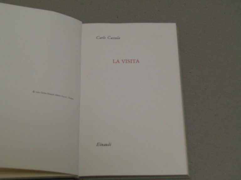 Carlo Cassola Carlo Cassola. La visita. Torino, Einaudi 1962 - I italiano, in ottavo pp.212 Raccolta di brevi novelle. Pagine leggermente ingiallite. Copertina cartonata in similtela con varie macchie causate dal tempo. Dorso ingiallito.