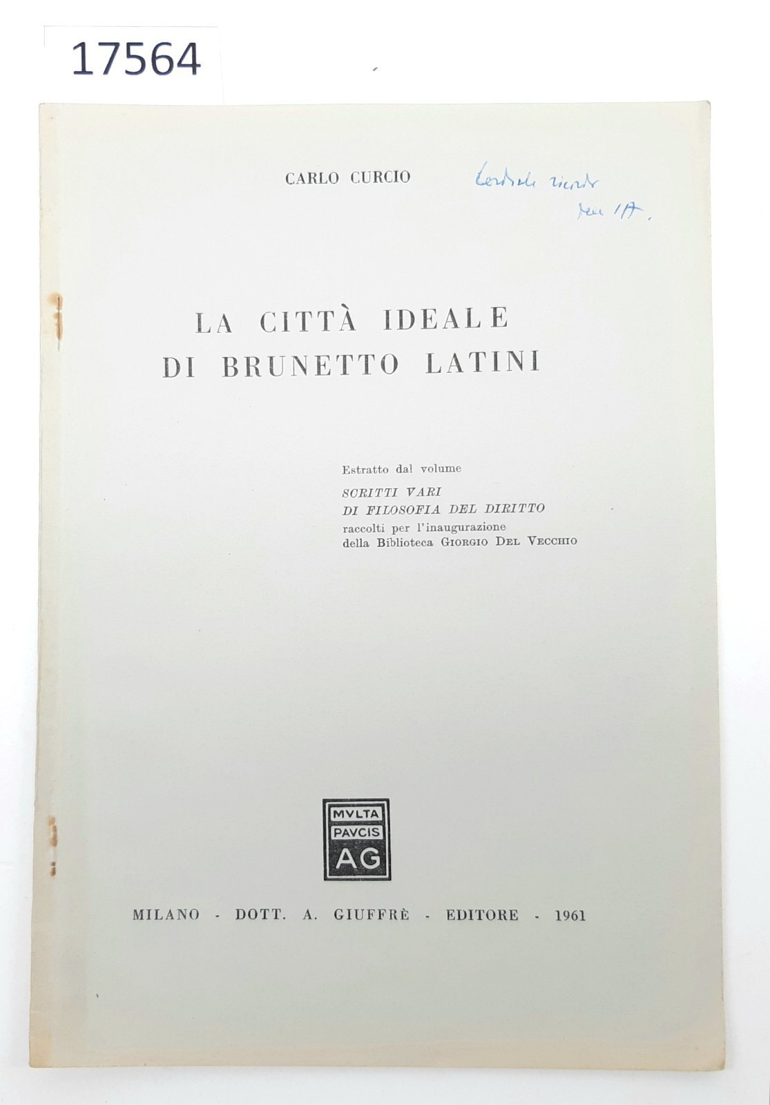 Carlo Curcio La Citt‡ ideale di Brunetto Latini estratto GiuffrË 1961
