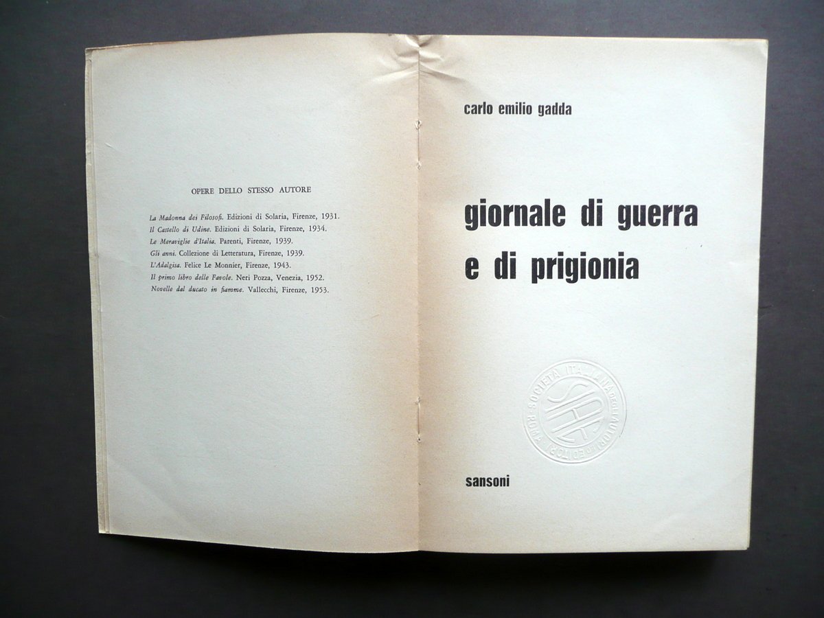 Carlo Emilio Gadda Giornale di Guerra e di Prigionia Sansoni 1955 Prima Edizione