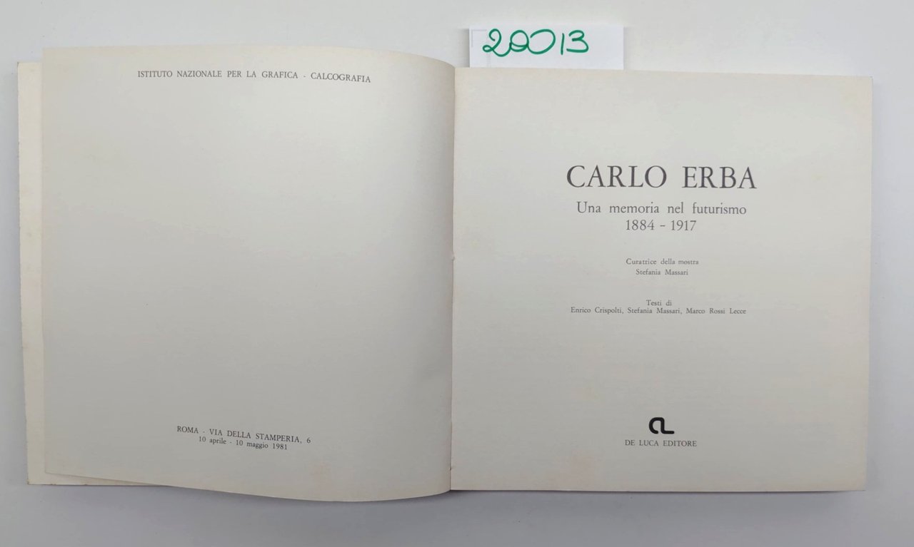 Carlo Erba una memoria nel futurismo 1884-1917 De Luca 1981
